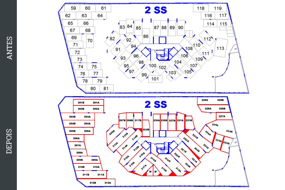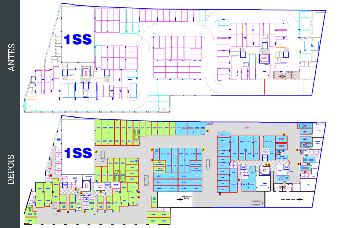 A otimização de layout é uma das principais partes do trabalho do Dr. Garagem, de forma bem resumida, este trabalho compreende no levantamento da planta com medidas reais, ou seja, por tratar-se de um subsolo é muito comum a planta não bater com a realidade e em cima desta planta real, estudar até encontrar a forma mais inteligente de se implementar as vagas ali dentro. Acreditem, esse trabalho costuma resultar em mais vagas espaçosas, áreas de manobra adequadas, e eventualmente gera mais vagas e até a dispensa do uso de manobristas.